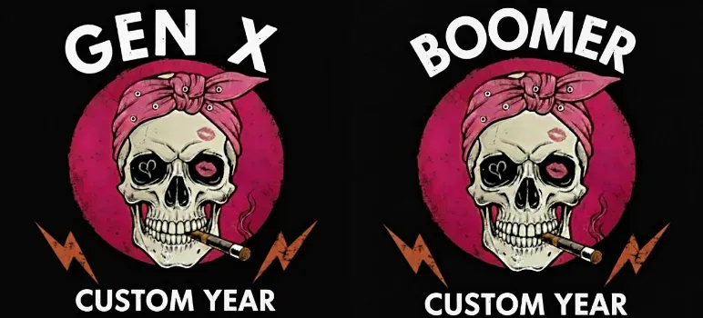 For the Boomer Woman (EST. 1946-1964): You are the powerful generation that shaped the world. You have wisdom, experience, and less tolerance for nonsense. This is your "Hardcore Grandma" Crest, a humorous way to let everyone know you're not to be messed with—but you're seriously cool.
